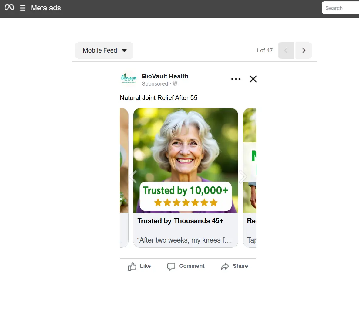 Designed and optimized targeted Facebook ads for a US-based health supplement, driving strong engagement and increased sales through precise audience segmentation and compelling creative assets.