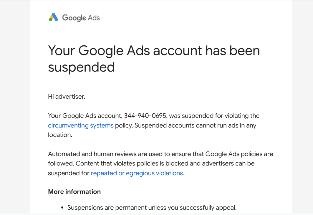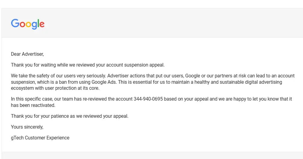 Result: Reinstated in 2 days; ads and revenue resumed.